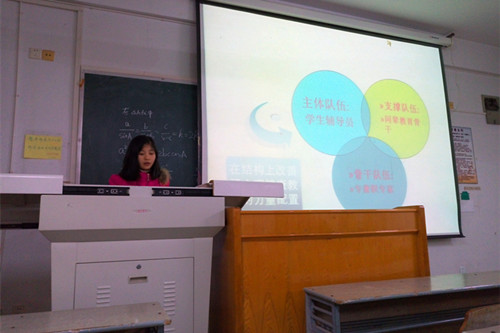 随后,方小娟同学通过方法与途径讲诉心理委员的工作重点;她讲到心理委员在工作应注意四“点”:1、大胆探索,找准工作的切入点;2、明确职责,突出工作的侧重点;3、高度警惕,把握工作的关键点;4、面对危机---立即报告。而后方小娟同学还给出了心理中心的联系方式,希望同学们有心理问题时可以及时去咨询。
