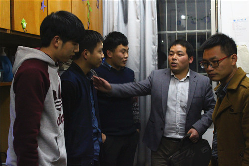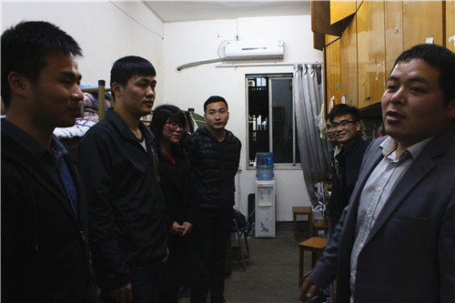 俞老师每进一个寝室,都关心了同学们现在的生活状况,并对大家布置了未来的任务,比如说寻找一个实习岗位或者进行考研。同学们也对俞老师的到来表示热烈的欢迎。