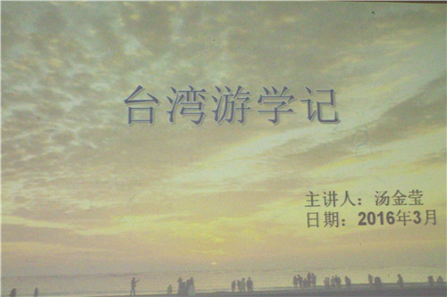 浏览次数:272(熊紫荆/文 陈恩乐/图)3月22日晚上18:30,汤金莹的台湾游学交流会在17幢212教室顺利开展,她和我们分享了她在台湾的游学经历。
