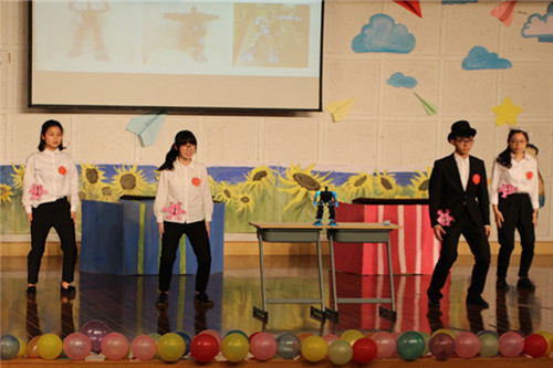 第一轮风采展示环节——“言为心声”。“工职小太阳”以魔术师的手法展现我院的工科特色。只见动作轻盈连贯的机器人,带着这组活泼可爱的小分队舞动全场,滑稽的舞步为赛场增添了不少趣味。