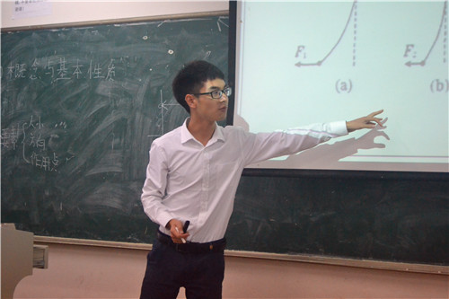 在专业组中,选手们在应变能力、表现力、表达能力方面都面临更高的挑战。10分钟的模拟上课环节充满趣味。选手们为营造一个活跃的课堂气氛,将很多趣味点融入教学。利用简单实验引入课题,以日常的生活趣事吸引学生的注意力,通过师生互动问答调动学生思考的积极性等。不同的专业授课内容和重点也有所不同,如力学中的静力学分析,平面汇交力系的解析法,电子信息类的稳压电路类等。尽管选题不同,但思维连贯、逻辑清晰、易于理解的语言表达和教学技巧依然是一场优秀的课堂教学所不可或缺的条件。