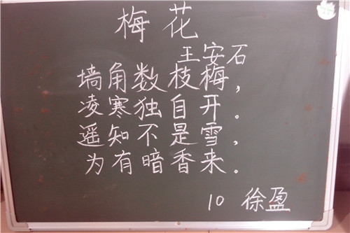 大一组选手首先进行了以王安石的《梅》为题的粉笔字书写,要求在规定时间内完成既定内容的板字书写。这考验了他们对所写内容的熟悉度,字迹的清晰度和整体布局的美观感。随后经由评委打分,继而抽取下一轮即兴讲演的题目。选题紧密贴合师生关系疏导、教师技能训练等实际问题。如“对中职教师的概念理解,学生上课睡觉如何处理,身为班主任如何增强班级凝聚力”等。每位选手都充分发挥才情,在3分钟内给出一个思路清晰,简明扼要的观点。