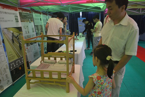 高景观婴儿推车、智能冲奶机、电子积木、智能导盲拐杖、基于3D打印技术的健康饮食产品服务系统等,在工业设计作品展区,只有你想不到,没有他们做不到,各种科技创新作品超乎你想象。