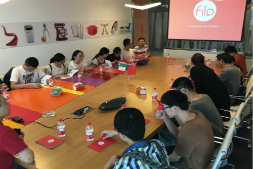 在公司负责人的热情接待和带领下,同学们参观了公司的各个设计工作室,并对公司设计的产品样品进行了实地参观。公司的负责人还向老师和同学们介绍了“斐络”的设计理念:“ Filo这一名字,最初来源于一个美好的希腊神话。这个词,在意大利语中,正是’线’的意思,寓意即为:解决复杂问题的勇气与智慧。我们愿做带领企业走出迷宫的那条线,将意大利设计带入工业发达、企业云集的中国,解决处在瓶颈期的企业的困惑。”