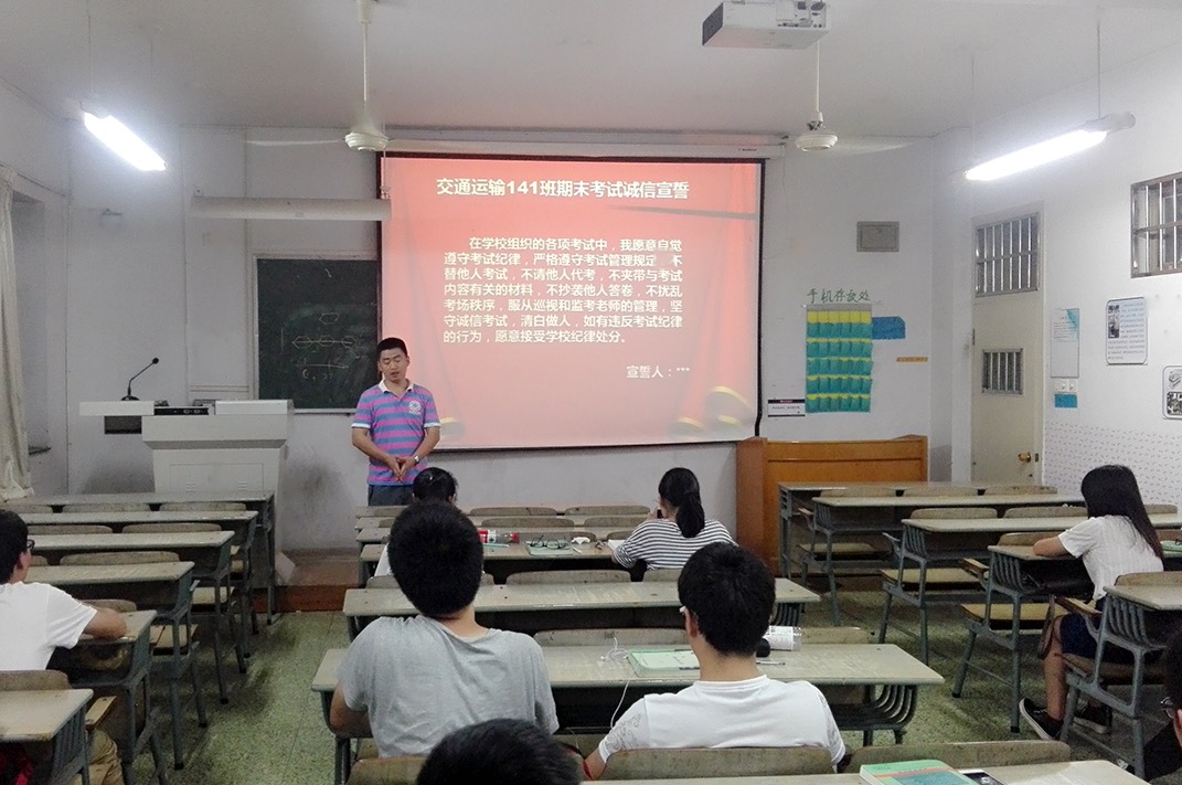 宣誓仪式完成后,班主任李磊老师对同学们这一年的学习和生活提出了自己的看法,同时也强调了诚信考试的意义,并且期待交运141班在这次期末考试中,取得好的成绩。