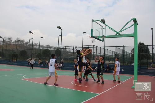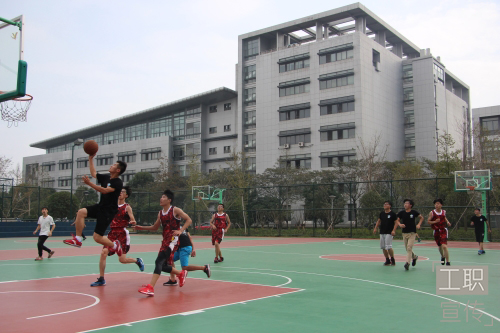比赛伊始,四个场地的竞争场面却已热闹非凡。在机电163班对战交运161班的场地上,红队队员热情似火,黑队队员势如破竹。只见一道弧线划过空中,球竟稳落在了对方球员的手中,球员再来一个侧身半蹲,起跳投篮,场上便又掀起一阵呐喊声。