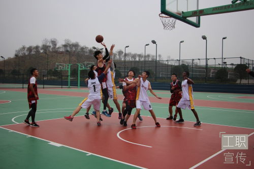 开场哨声一响,机英161班摆出严防的架势,可机电163班队员从容不迫,运球后交叉步过掉防守,轻松上篮拿下两分。两队互不相让,你一个跳投我一个盖帽,拼抢十分激烈。上半场结束,机电163班暂时领先。