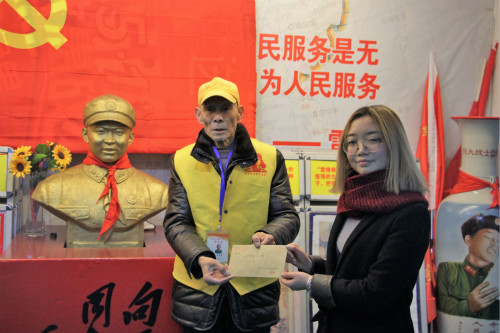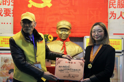 一手创办金华市雷锋文化馆的曹荣安爷爷对此次我院学生会的捐赠表示感谢,并向我院学生会颁发了证书和奖章。