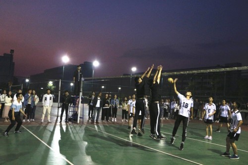 在接下来的比赛中,双方比分逐渐拉开差距。我院队员们精神状态良好,自信满满、斗志昂扬,他们奋力打出最好的水平。随着最后一个球的砰然落地,我院以25:11的比分暂时领先。