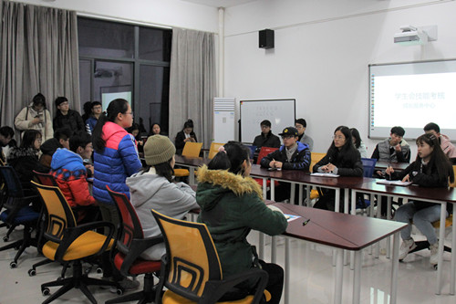 竭诚服务于学院科研竞赛工作的学生创新中心在考核中通过设置“如何处理工作突发情况”、“如何策划一场比赛”等问题引导干事灵活应变。