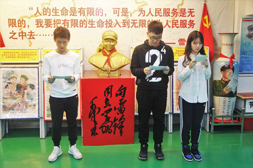 12月22日,我院学生会虚拟公司全体成员和各参赛队伍一同前往金华市雷锋文化馆举行捐赠仪式。在捐赠仪式上,施嘉诚、朱剑、苑思瑀三位同学朗诵《沁园春·颂改革开放四十周年》,庆祝改革开放四十周年。朗诵结束后,雷锋文化馆负责人曹荣安老人为同学们讲解雷锋精神内涵,并希望同学们能够传承和发扬雷锋精神,热心帮助他人,为社会贡献力量。