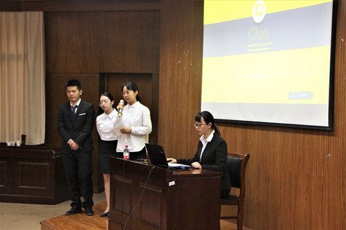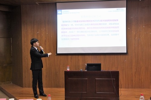 比赛分为作品介绍与现场答辩两个环节,19个团队依次派代表上台进行产品项目展示。选手们分别通过项目背景、产品介绍、市场分析、营销推广等方面展示参赛作品。参赛团队以专利为依托,希望借此比赛平台获得更多的指导建议并推广项目。专业评审老师对每个团队的产品项目进行提问并给出指导意见,最后从创新性、实用性、社会价值、经济价值四个方面对参赛作品进行评分。