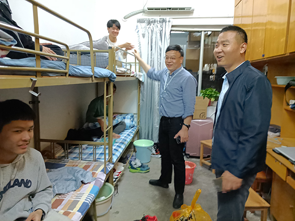 随后,工学院领导班子、辅导员、班主任、学生干部一同走访了杏园、启明等新生公寓。