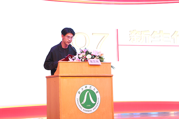 黎一唱同学作为新生代表在发言中表示在今后的大学生活中要做到珍惜当下,努力学习;坚持不懈,迎难而上;珍惜友情,敬爱师长,用奋斗创造无悔青春,用青春开创明天的辉煌。