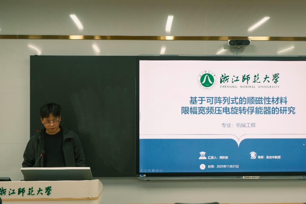 周积俊同学,提出了一种新的基于可阵列式的顺磁性材料限幅宽频压电旋转俘能器,利用压电俘能技术,提高俘能器对环境能量利用率,在研究过程中利用仿真软件验证其可行性,取得了一定成果,并提出在后续试验中补充不同工作条件下的数据以完善研究。