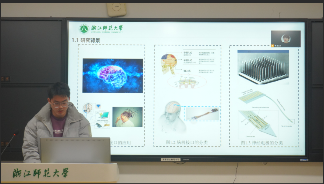 林晓辉同学分享了“面向柔性电极植入的主动回退式驱振一体压电驱动器的研究”,该研究面向脑机接口与神经科学的前沿需求。为解决柔性电极植入脑组织时易发生屈曲、破损的业界难题,他创造性地设计了一款“驱振一体”的压电驱动器。该驱动器能输出独特的“前进-回退”式振动轨迹,这种主动回退动作能大幅降低植入过程中的穿刺阻力。实验表明,该装置能安全、平稳地将柔性电极送达目标脑区,为未来微型化、自动化的神经电极植入系统提供了核心技术支撑。