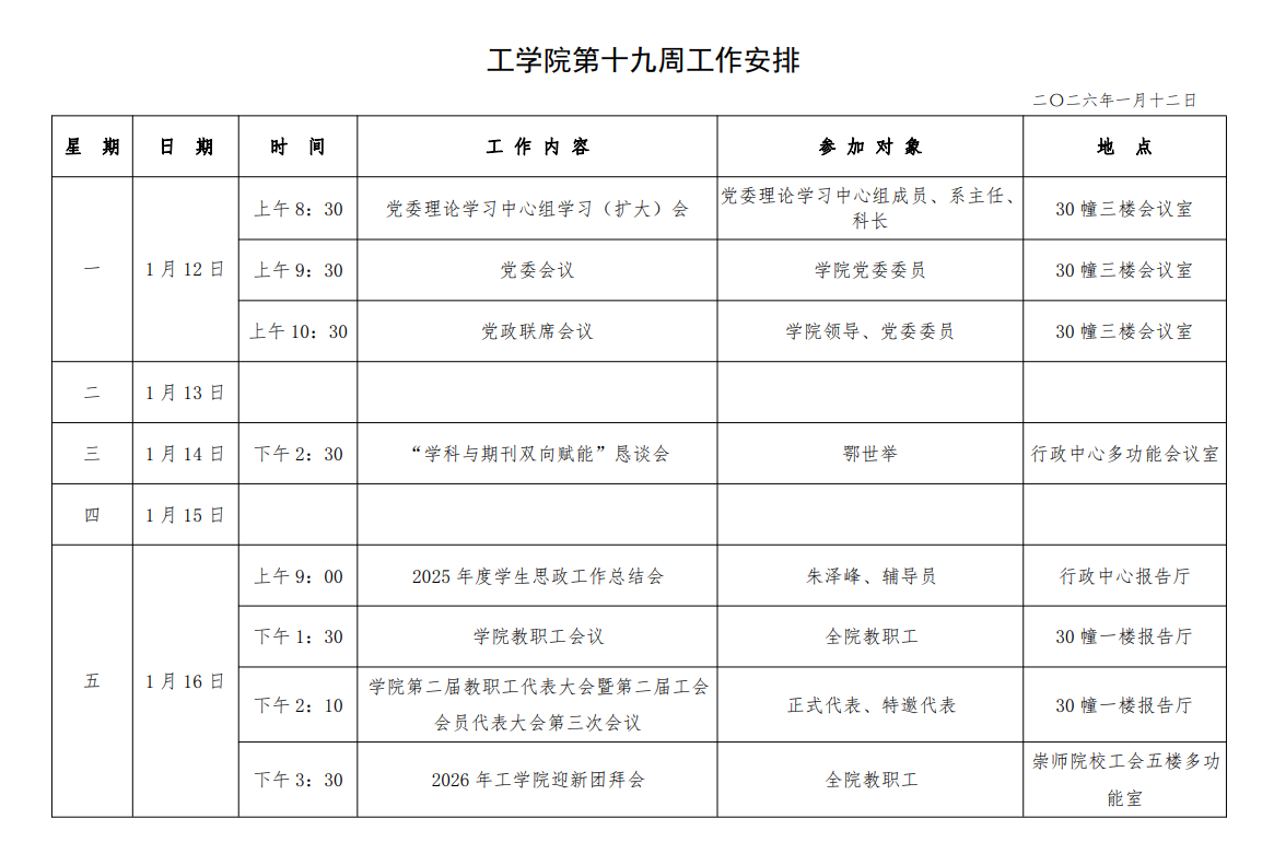 工学院第十九周工作安排
