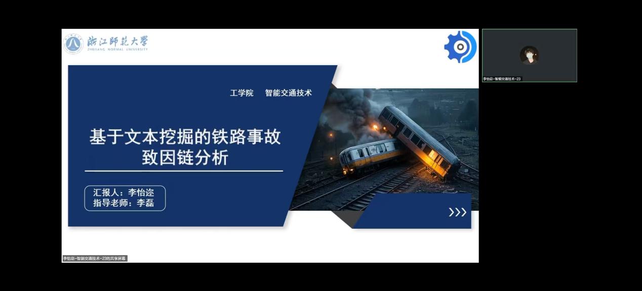 (院研究生会刘文浩 文/图)3月31日下午,我院第十九期“工学智汇”智能交通技术研究生学术汇报活动于线上顺利举办,本次活动通过腾讯会议进行。浙江师范大学工学院毛程远老师参会指导,汇报人分别为23级智能交通技术专业研究生李怡迩、雷芳玲、胡年一、刘天龙和梁毅。工学院24、25级研究生积极参与了此次活动,活动由研究生林佳倩主持。